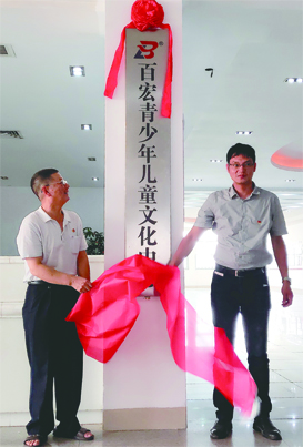 开幕式上,百宏党委书记、副总裁叶敬平首先对“百宏青少年儿童文化中心”的成立表示热烈的祝贺,同时也感谢龙湖镇党委、政府的关心和支持,感谢合作伙伴的协作支持。他说:“百宏双职工家庭是公司的一大特色,我们通过改善住宿、自办幼儿园、就近入学、校车接送、课后四点钟学校辅导,解决员工的后顾之忧,这次我们在晋江市首创企业内的青少年儿童文化中心,联合信誉好、有实力的培训机构入驻,专门为员工子女提供素质兴趣艺术培训等。少年强,则中国强,希望党群组织及合作伙伴将我们的中心打造成一个特色突出,开发共享的优质学习培训基地,丰富百宏家园文化内涵。”10点30分,陈俊毅副书记与百宏党委叶敬平书记共同揭牌,至此,“百宏青少年儿童文化中心”正式开放运营。