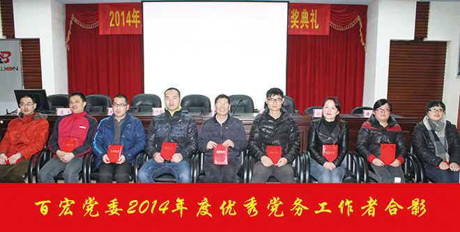 2月6日晚,百宏黨委召開了2014年度年終總結大會暨2014年度“評優”表彰典禮。百宏黨委書記葉敬平、各黨支部書記及全體黨委委員、黨員、入黨積極分子出席會議。