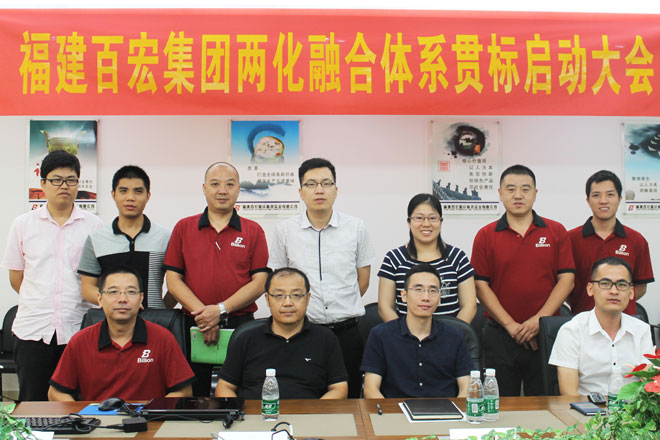 8月11日上午,福建百宏集團在二樓會議室召開了兩化融合管理體系貫標啓動大會。百宏集團副總裁葉敬平、總裁助理包文錦、人力行政中心副總經理幸青山及信息、財務、生産、設備各相關部門負責人參加啓動會。貫標咨詢服務機構廈門邑通軟件科技有限公司(以下簡稱“邑通”)、廈門市信息化與工業化融合促進中心主任林和坤及咨詢顧問團成員共同參加本次啓動會。