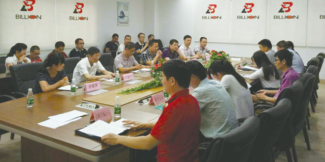 2015年9月28日下午,龍湖鎮企業黨委副書記莊銘德、英林鎮企業黨委副書記王壽權,市委下派黨建指導員楊煌程、專職幹部蘇明山、黨務工作者洪銀萍及各企業黨支部書記、黨務工作者齊聚百宏公司,召開片區黨建聯席會,旨在進壹步推動非公黨建發展,落實“三級同創”項目建設進展,傳達8月19日市委第四批選派兩新組織挂職幹部工作座談會的相關會議精神及工作安排。