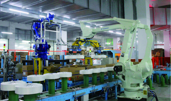 百宏聚纖公司“年産33萬噸差別化化學纖維數字化自動化智能生産工廠”項目從2012年開始建設,2015年6月已基本建設完成,並全面生産。項目引進1套33萬噸聚合生産設備及聚合分散型過程控制系統、24條紡絲全自動生産線及控制系統、150台全自動智能高速加彈機及控制系統、14條紡絲全自動機器人落筒線、2套FDY産品全自動智能化包裝線、1座3萬噸智能存儲立體庫,開發出一套熔體直紡滌綸長絲紡絲工程模擬計算系統及工藝優化的系統用于産品開發,開發出一套MES系統指導生産,開發出一套ERP系統全面覆蓋到經營管理的各個環節,實現高效、完善、合理的智能生産工廠。