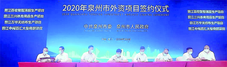 9月8日,2020廈門國際投資貿易洽談會在廈門開幕。在隨後舉行的2020年泉州市外資項目集中簽約活動上,百宏年產33萬噸聚酯薄膜等4個合同項目現場簽約,百宏實業董事局主席施天佑出席簽約儀式。